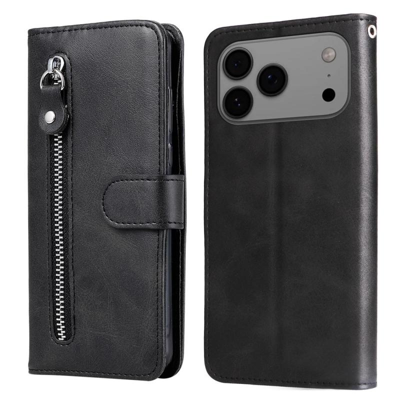 For iPhone 17 Pro Max Fashion Calf Texture Zipper Leather Phone Case(Black)