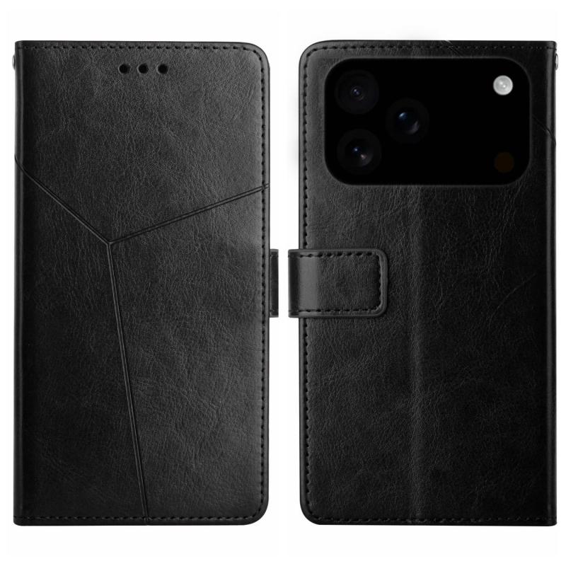 Θήκη τηλεφώνου από δέρμα με σχέδιο Y και πτυσσόμενη για iPhone 17 Pro Max HT01 (Μαύρο)