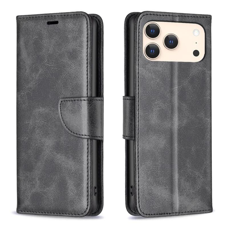 For iPhone 17 Pro Max Lambskin Texture Pure Color Flip Leather Phone Case(Black)