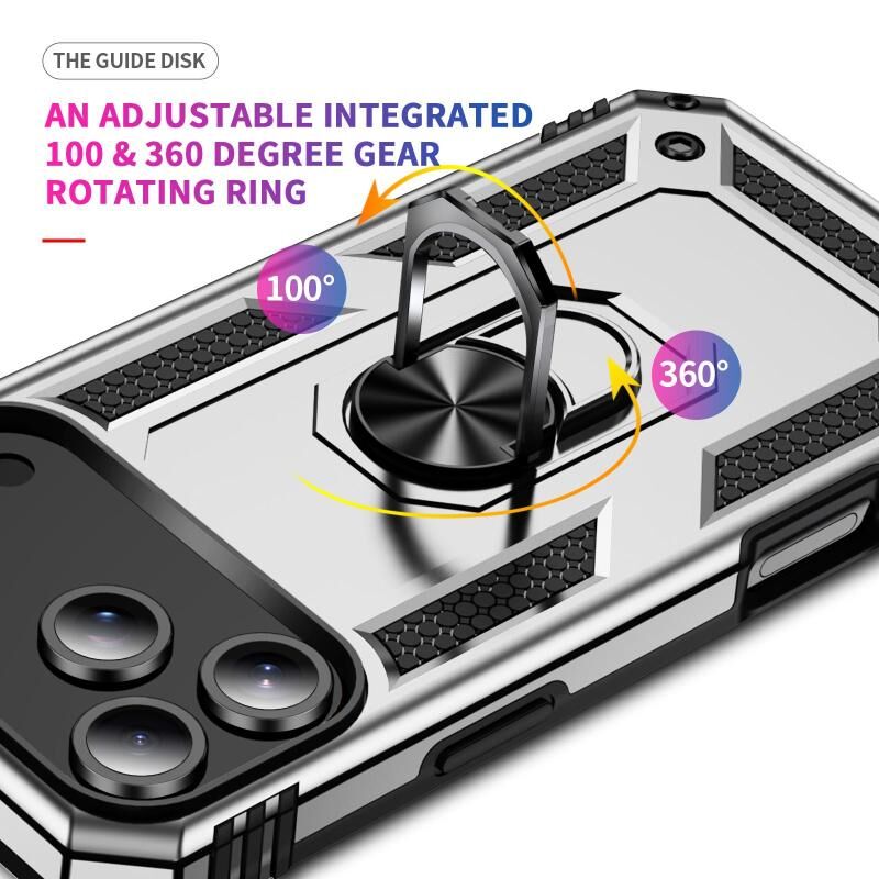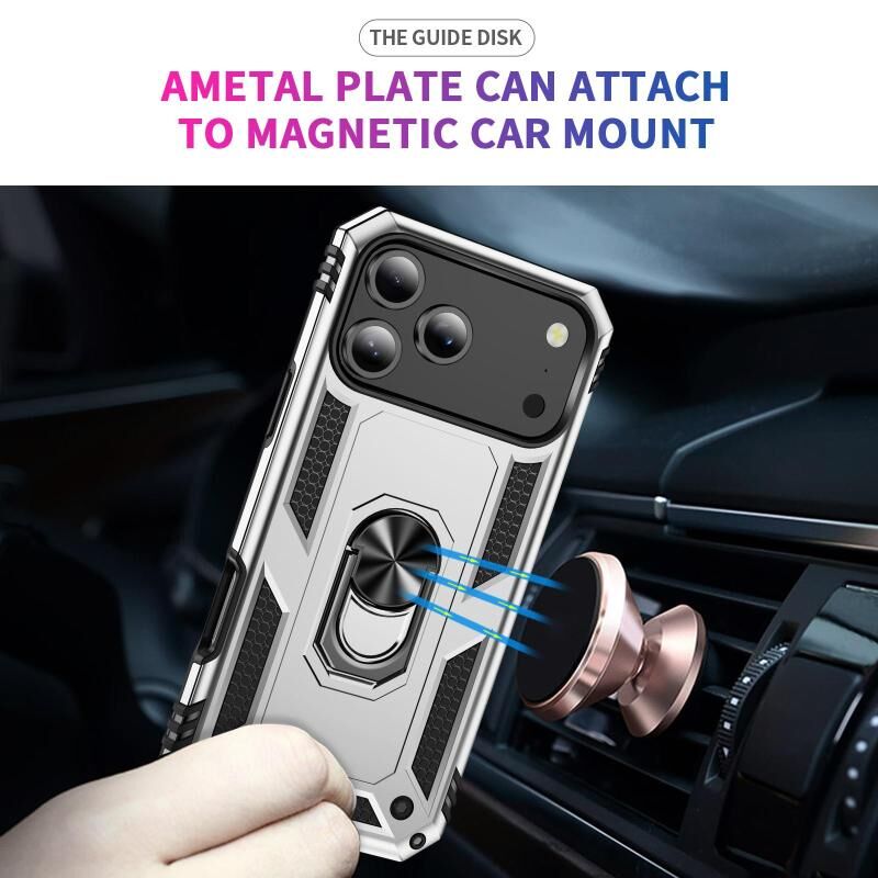 For iPhone 17 Pro Max Shockproof TPU Hybrid PC Phone Case with Holder(Silver)