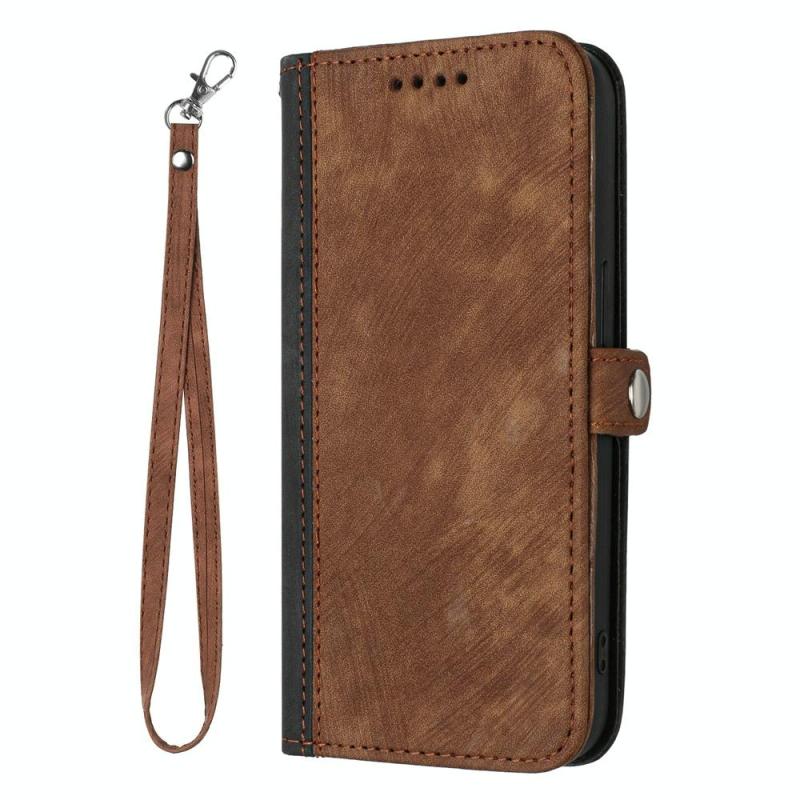 Θήκη τηλεφώνου από δέρμα για iPhone 17 Pro Max με πλευρική αγκράφα, διπλό λουρί χειρός (Καφέ)