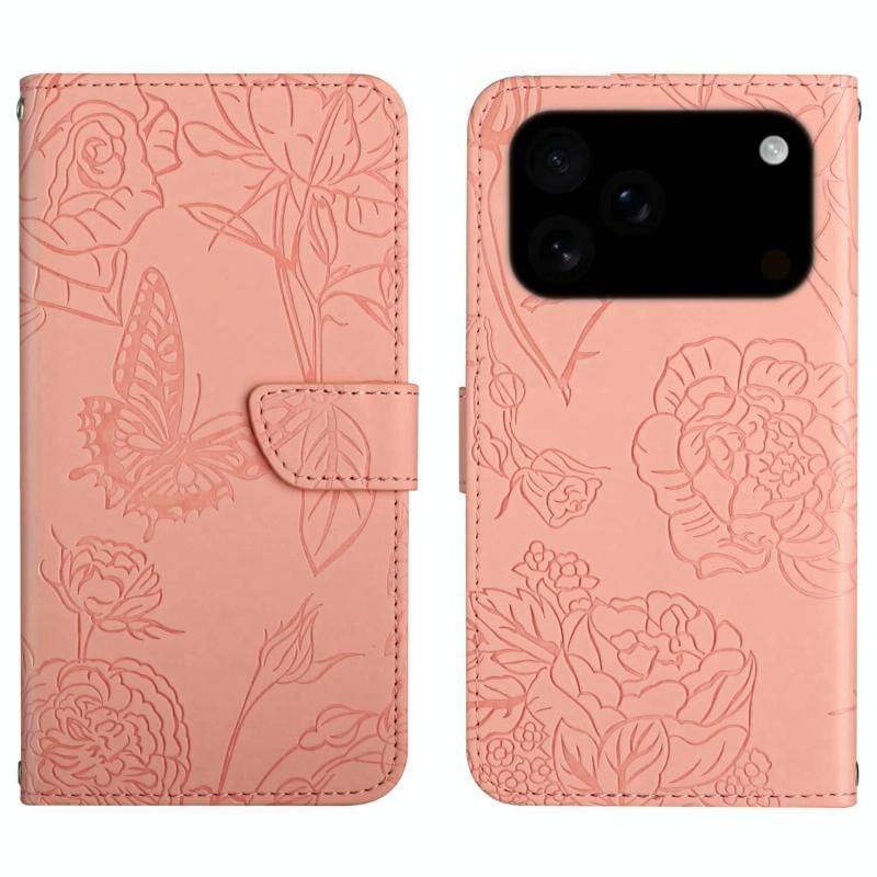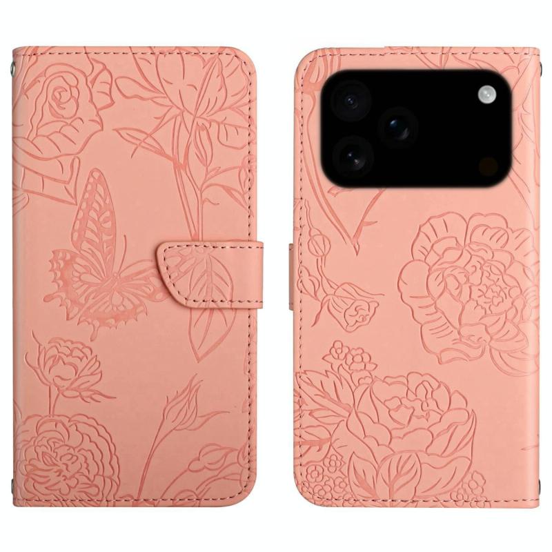 For iPhone 17 Pro Max Skin Feel Butterfly Embossed Flip Leather Phone Case(Pink)