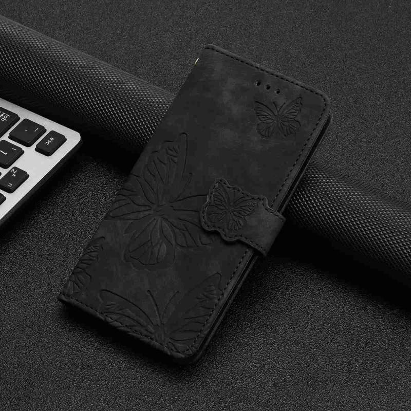 For iPhone 17 Pro Max Skin-feel Embossed Butterfly Leather Phone Case(Black)