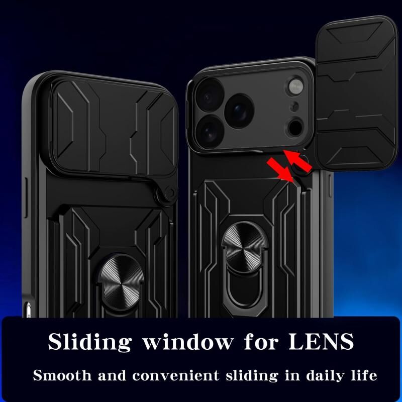 For iPhone 17 Pro Max Sliding Camshield TPU+PC Phone Case with Card Slot(Rose Gold)