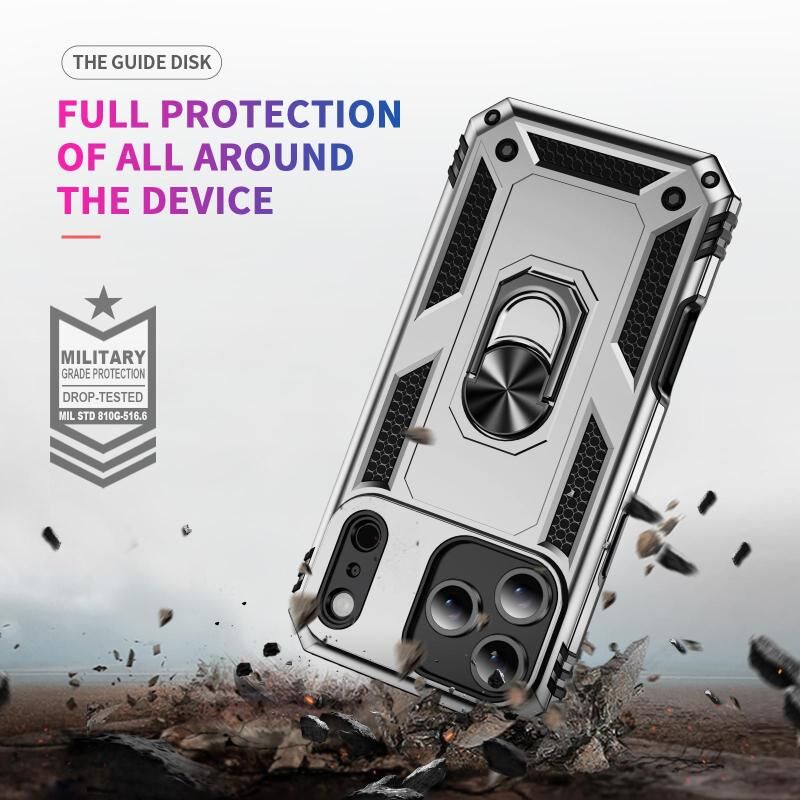 Θήκη για iPhone 17 Pro ανθεκτική στις κρούσεις, υβριδική από TPU και PC με βάση στήριξης (Ασημί)
