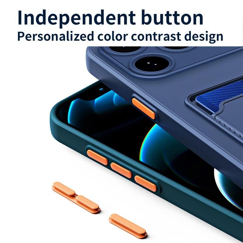 Θήκη τηλεφώνου TPU για iPhone 17 Pro με αίσθηση δέρματος, αντίθεση χρωμάτων και κουμπιά (Σκούρο μπλε)