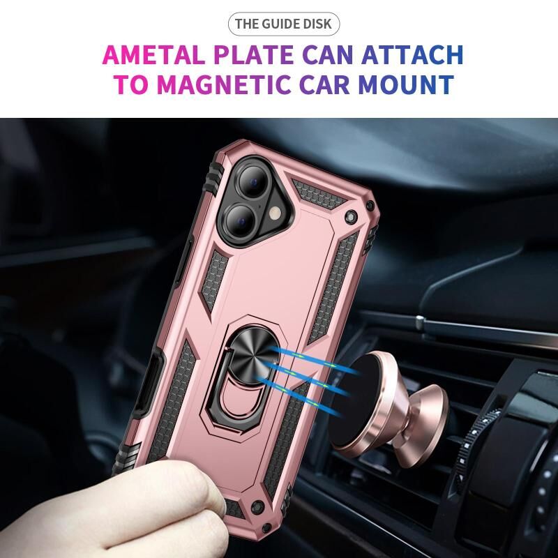 For iPhone 17 Shockproof TPU Hybrid PC Phone Case with Holder(Rose Gold)