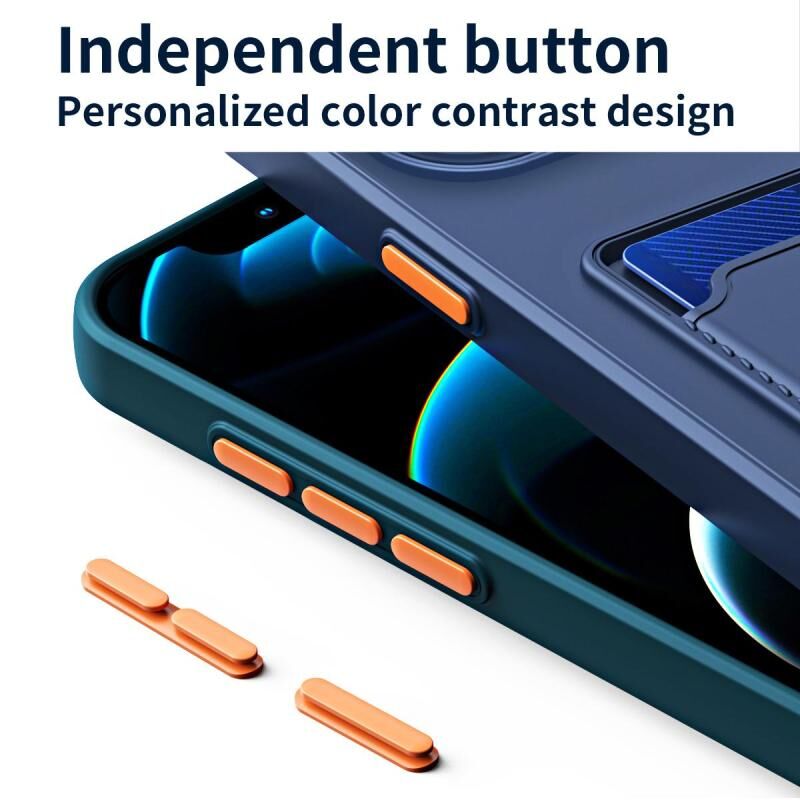 For iPhone 17 Skin Feel Card Contrast Color Button TPU Phone Case(Dark Green)