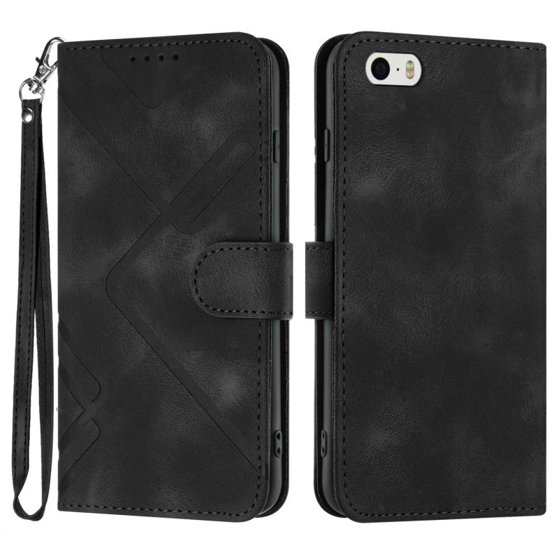 For iPhone 5s / SE Line Pattern Skin Feel Leather Phone Case(Black)