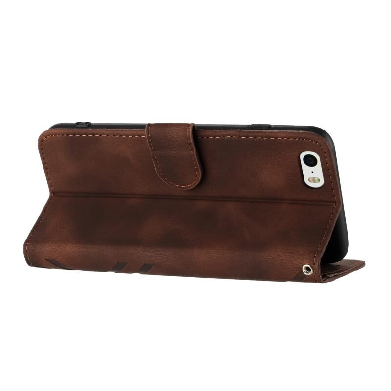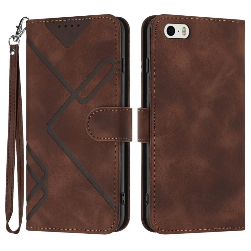 Θήκη τηλεφώνου από δέρμα με υφή και σχέδιο γραμμών για iPhone 5s / SE (Καφέ)