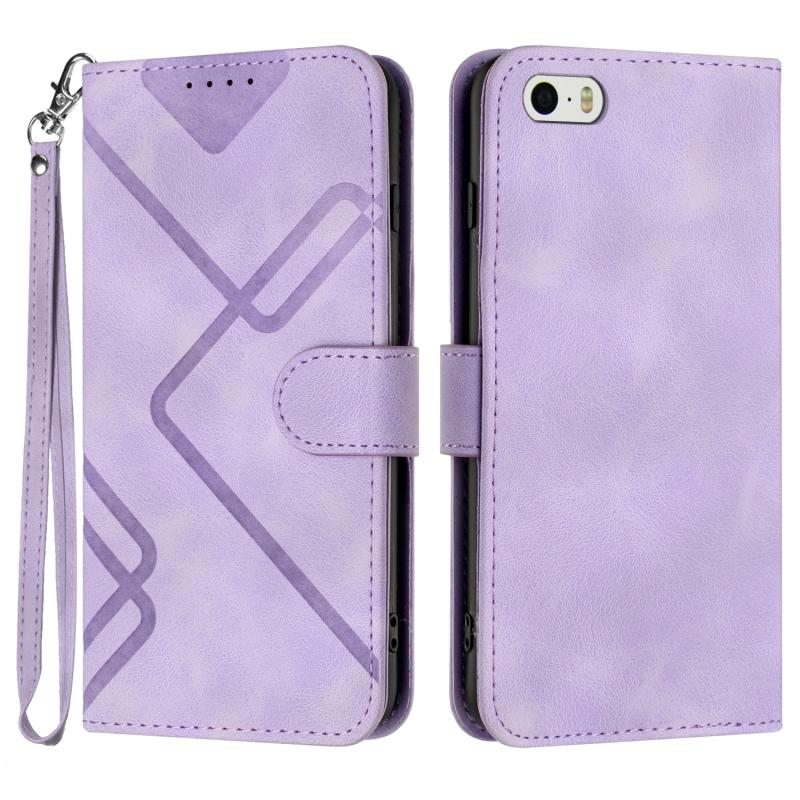 For iPhone 5s / SE Line Pattern Skin Feel Leather Phone Case(Light Purple)