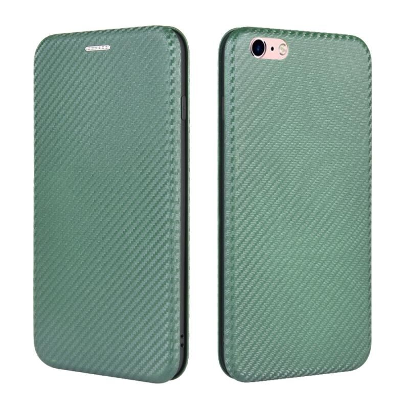 Θήκη για iPhone 6 / 6s με οριζόντιο άνοιγμα, υφή ανθρακονήματος, από TPU + PC + Δερματίνη PU με θήκη για κάρτες (Πράσινο)