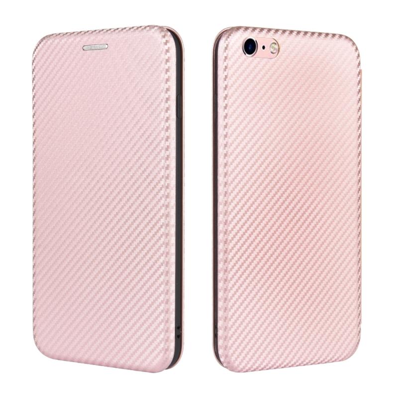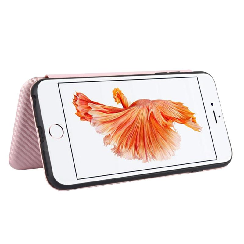 For iPhone 6 / 6s Carbon Fiber Texture Horizontal Flip TPU + PC + PU Leather Case with Card Slot(Pink)