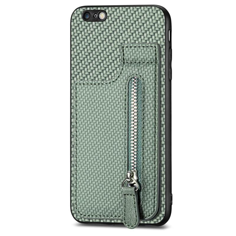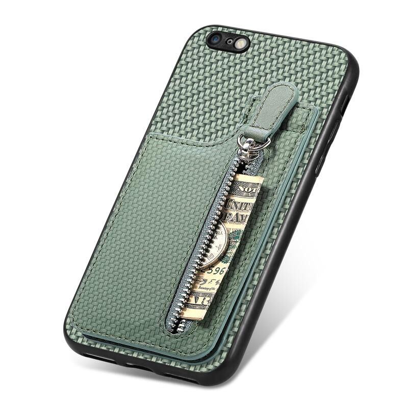 Θήκη τηλεφώνου με κάθετη αναδίπλωση και φερμουάρ από ανθρακονήματα για iPhone 6 / 6s (Μαύρο)