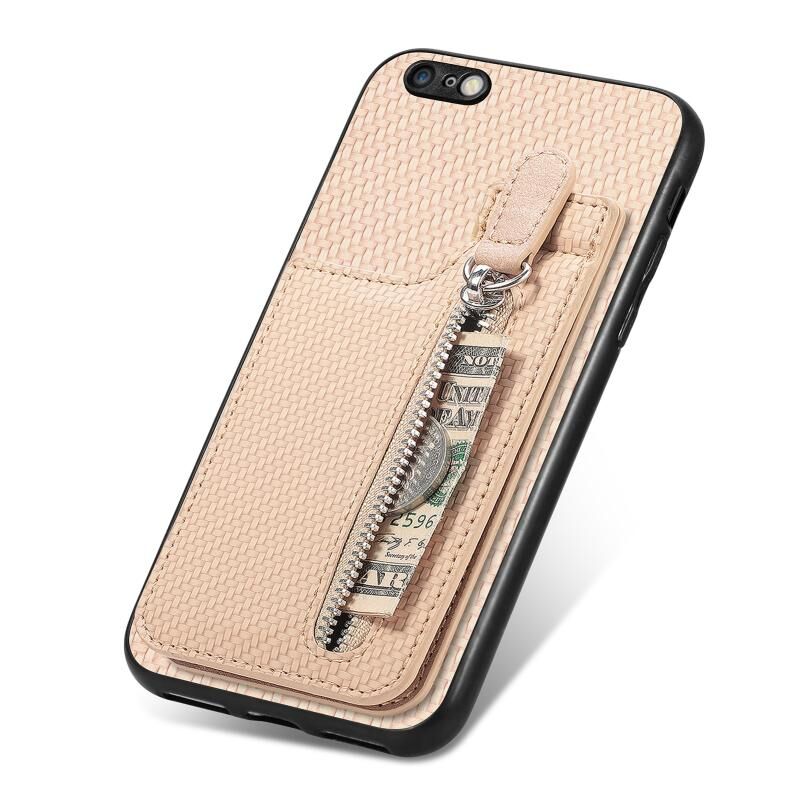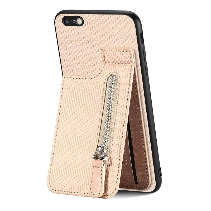 Θήκη τηλεφώνου με κάθετη αναδίπλωση και φερμουάρ από ανθρακονήματα για iPhone 6 / 6s (Μαύρο)