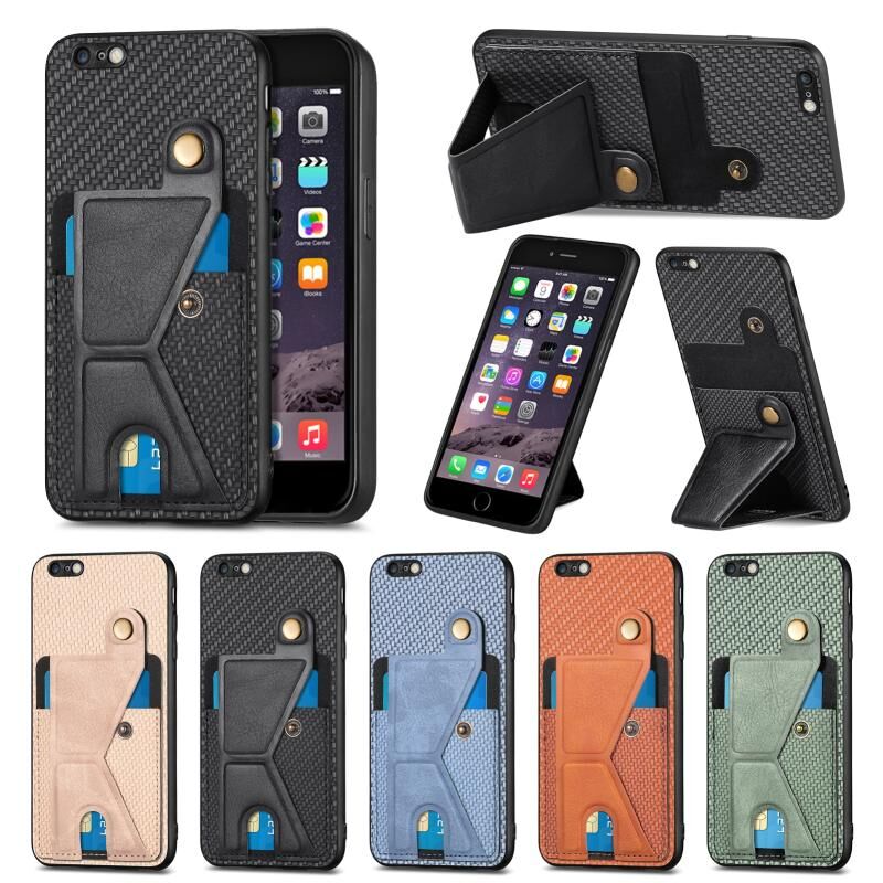 Θήκη κινητού τηλεφώνου τύπου πορτοφολιού με κάρτες, από ανθρακονήματα, σε σχήμα Κ για iPhone 6 / 6s (Μαύρο)