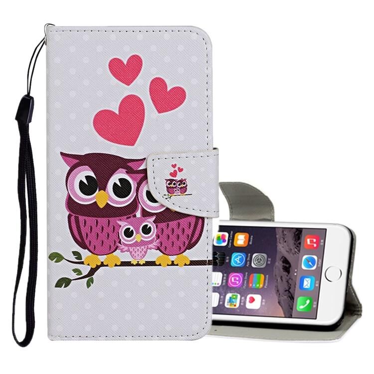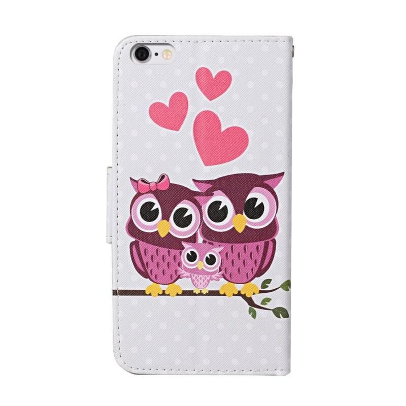 Θήκη δέρματος οριζόντιας αναδίπλωσης με σχέδιο πολύχρωμης ζωγραφικής για iPhone 6 / 6s με βάση & υποδοχές καρτών & πορτοφόλι (Οικογένεια Κουκουβαίων)