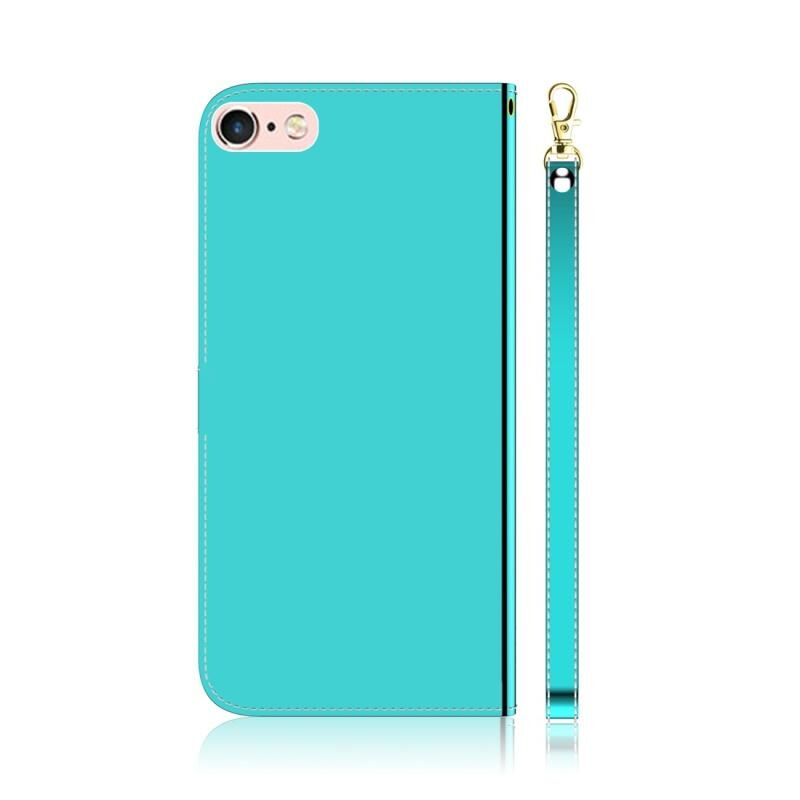 Θήκη δερμάτινη οριζόντιας αναδίπλωσης για iPhone 6 / 6s με καθρεφτισμένη επιφάνεια, βάση στήριξης, θήκες για κάρτες, πορτοφόλι και λουρί (Μαύρο)