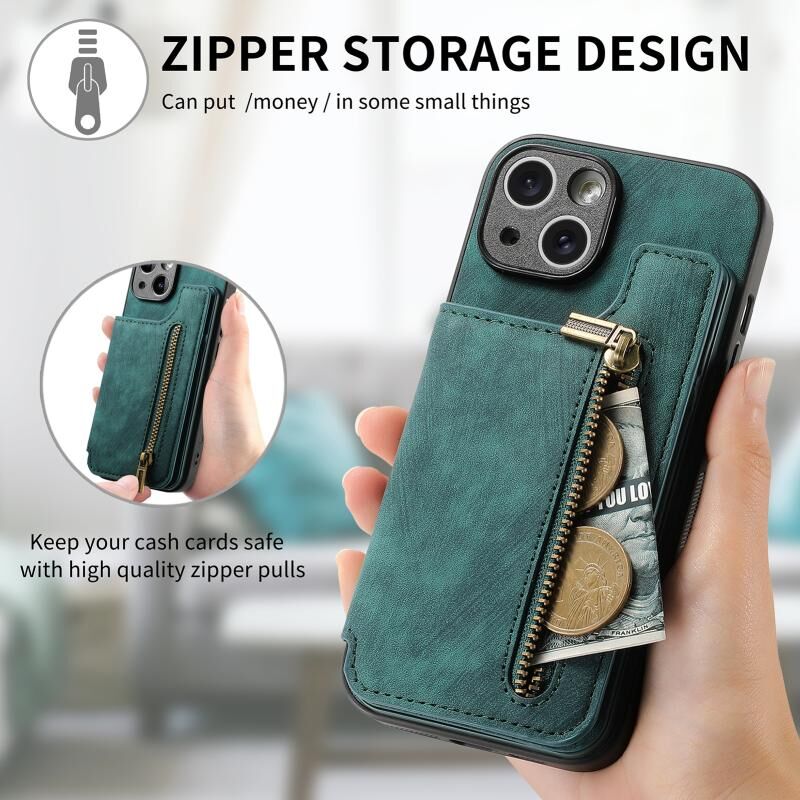 Για iPhone 6 / 6s Ρετρό δέρμα φερμουάρ πορτοφόλι πίσω θήκη τηλεφώνου (πράσινο)