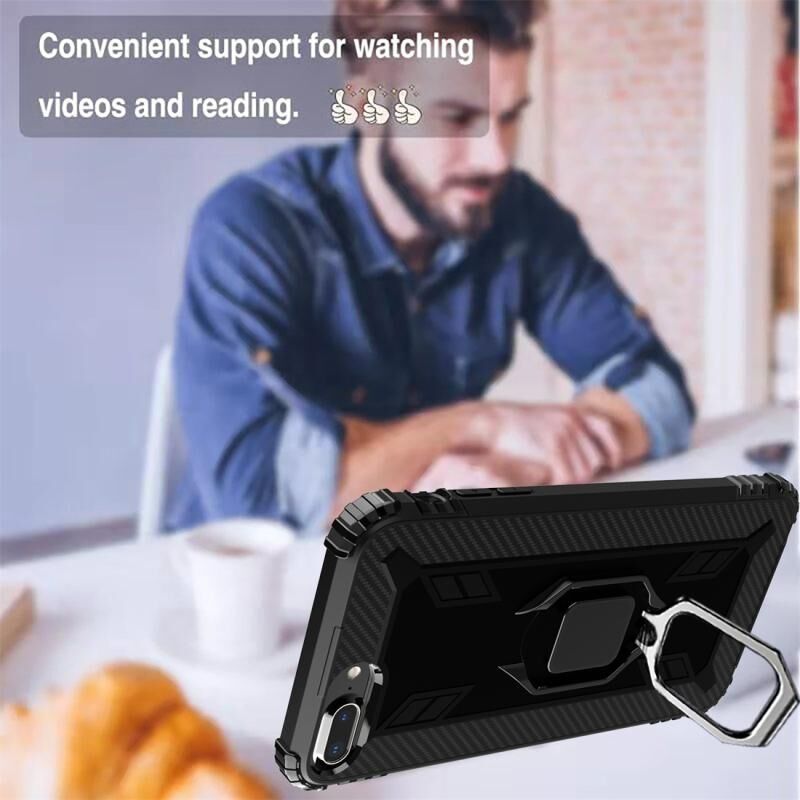 Θήκη προστασίας από ανθρακονήματα για iPhone 6 / 7 / 8 με περιστρεφόμενη βάση δακτυλιδιού 360 μοιρών (Μαύρο)