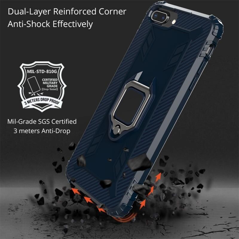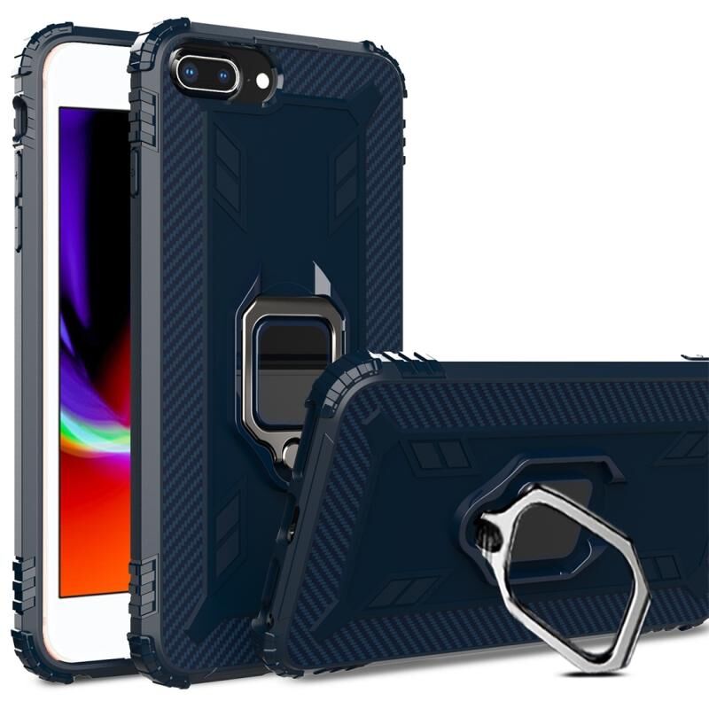 Θήκη προστασίας από ανθρακονήματα για iPhone 6 / 7 / 8 με περιστρεφόμενη βάση δακτυλιδιού 360 μοιρών (Μπλε)
