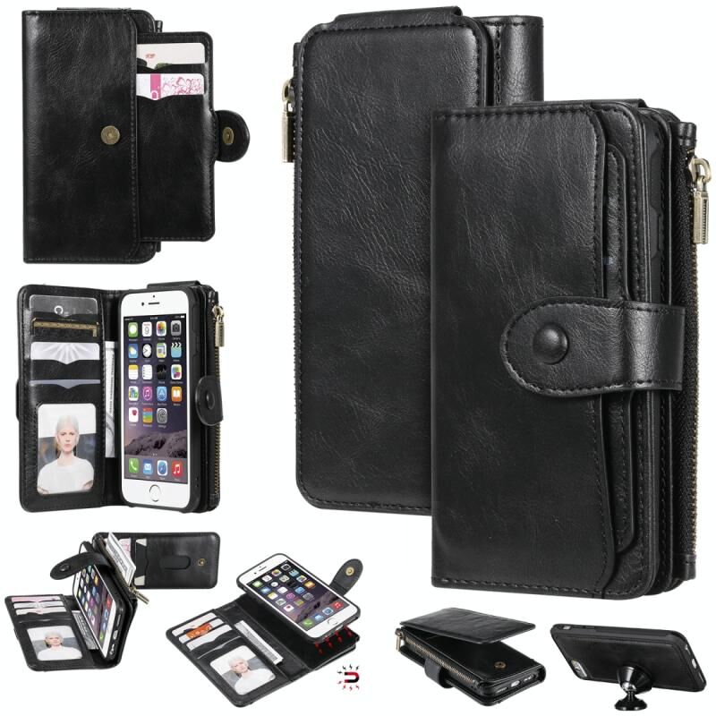 For iPhone 6 / 7 / 8 Multifunctional Retro Detachable Magnetic Horizontal Flip Leather Case with Card Slots & Holder & Wallet & Photo Frame(Black)