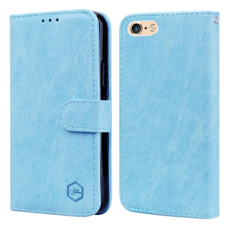 Θήκη κινητού τηλεφώνου για iPhone 6 / 7 / 8 / SE 2022 με υφή δέρματος λάδι PU + TPU (Ανοιχτό μπλε)