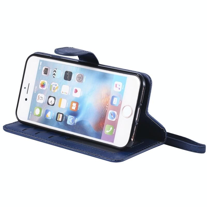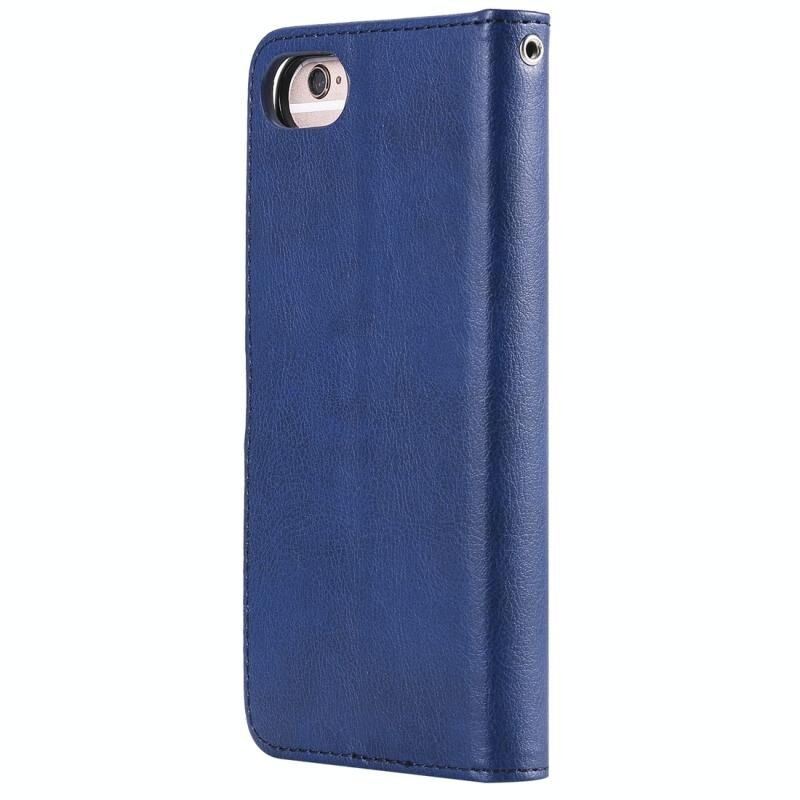 For iPhone 6 / 7 / 8 Solid Color Horizontal Flip Protective Case with Holder & Card Slots & Wallet & Photo Frame & Lanyard(Blue)