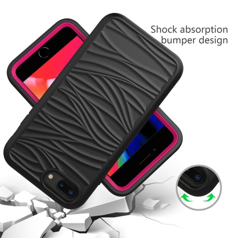 Θήκη προστασίας 3 σε 1 από σιλικόνη+PC ανθεκτική σε κρούσεις για iPhone 6/7/8G με κυματιστό σχέδιο (Μαύρο)