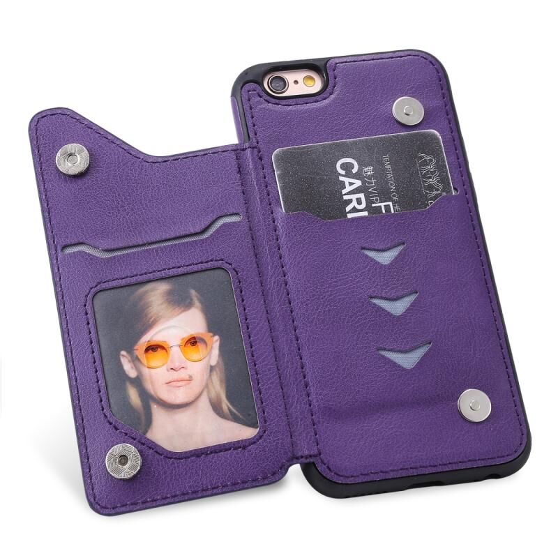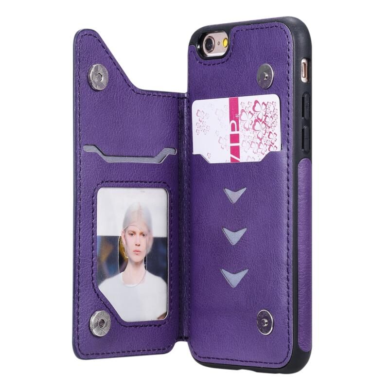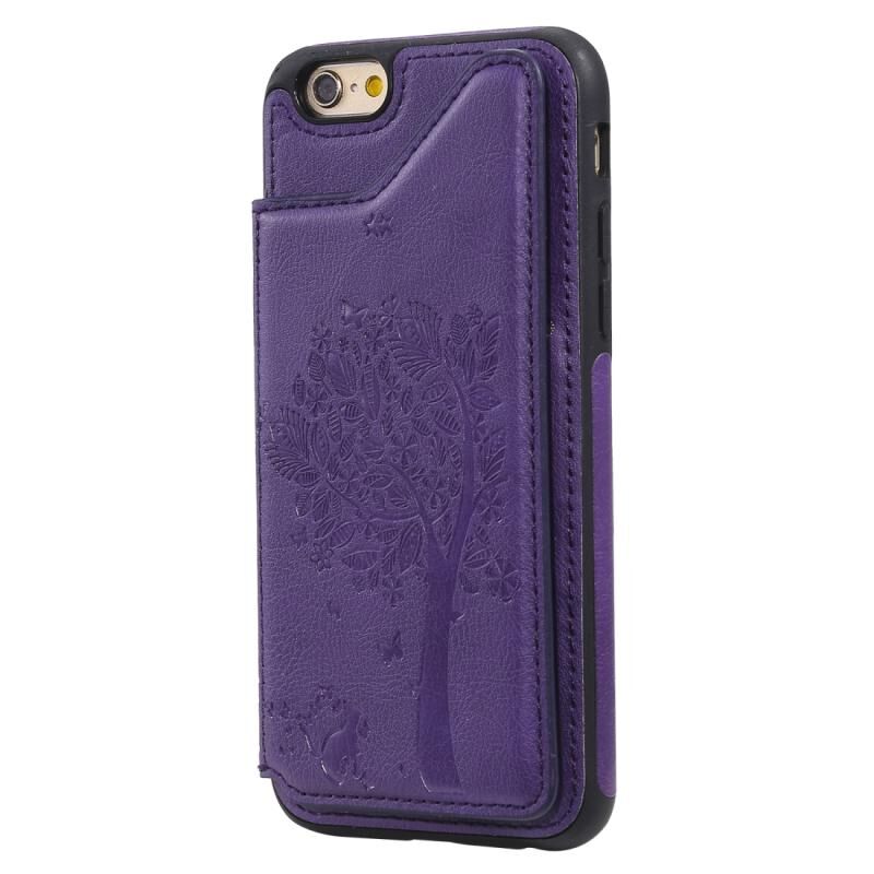 For iPhone 6 & 6s Cat Tree Embossing Pattern Shockproof Protective Case with Card Slots & Photo Frame & Holder(Purple)