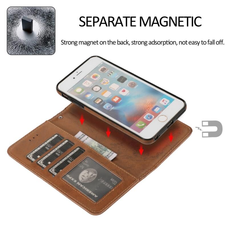 4. Πολυλειτουργικός σχεδιασμός, θήκες για κάρτες, πορτοφόλι, βάση στήριξης, αποσπώμενη μαγνητική προστατευτική πίσω θήκη.