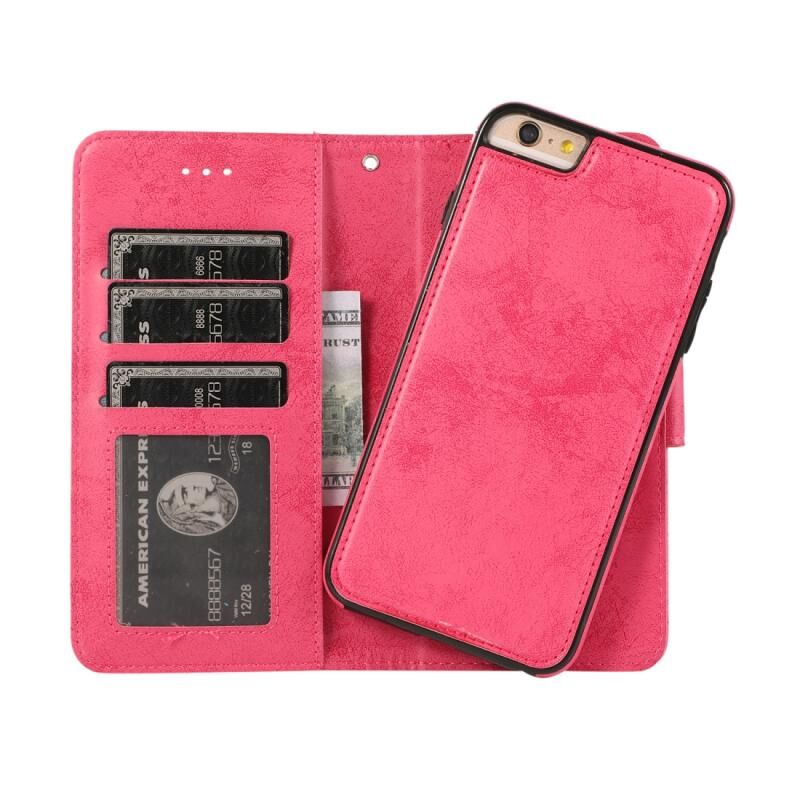Για iPhone 6 KLT888-2 Ρετρό 2 σε 1 Αποσπώμενη Μαγνητική Οριζόντια Θήκη TPU + Δερμάτινη PU με Στήριξη & Θήκες Καρτών & Κορνίζα Φωτογραφιών & Πορτοφόλι (Κόκκινο Ρόδι)