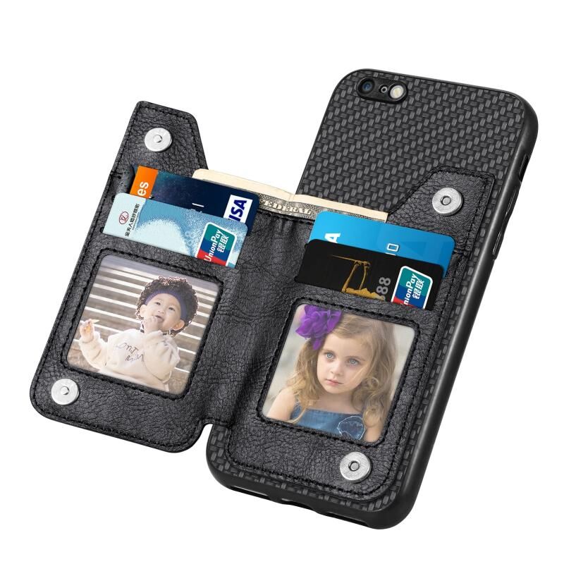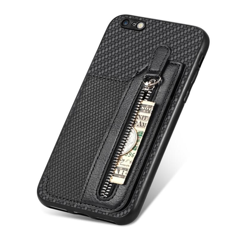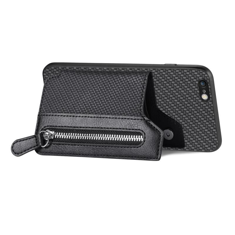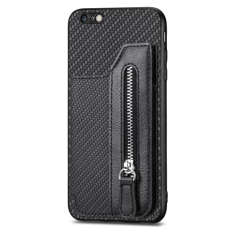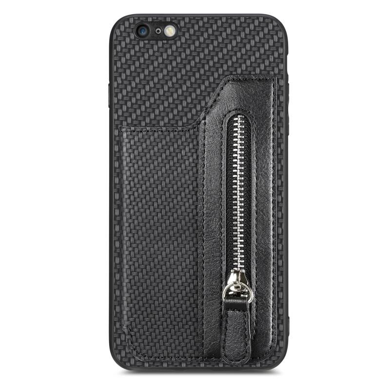 Θήκη τηλεφώνου τύπου πορτοφολιού με οριζόντιο άνοιγμα και φερμουάρ από ανθρακονήματα για iPhone 6 Plus / 6s Plus (Μαύρο)