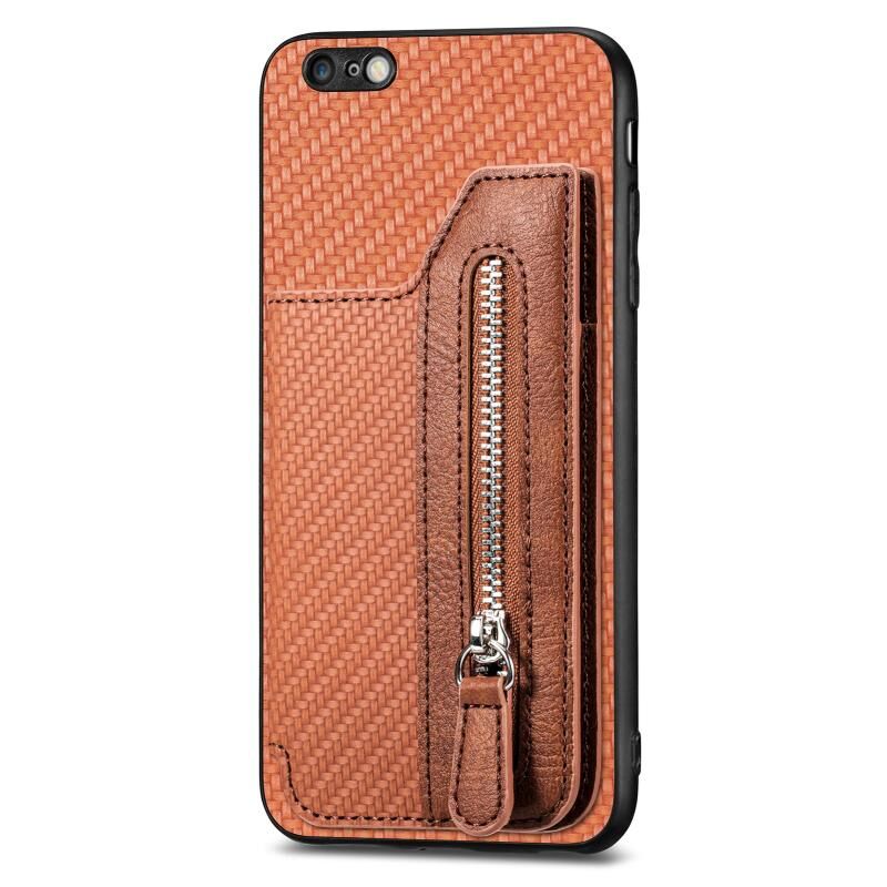 Θήκη τηλεφώνου τύπου πορτοφολιού με οριζόντιο άνοιγμα και φερμουάρ από ανθρακονήματα για iPhone 6 Plus / 6s Plus (Μαύρο)