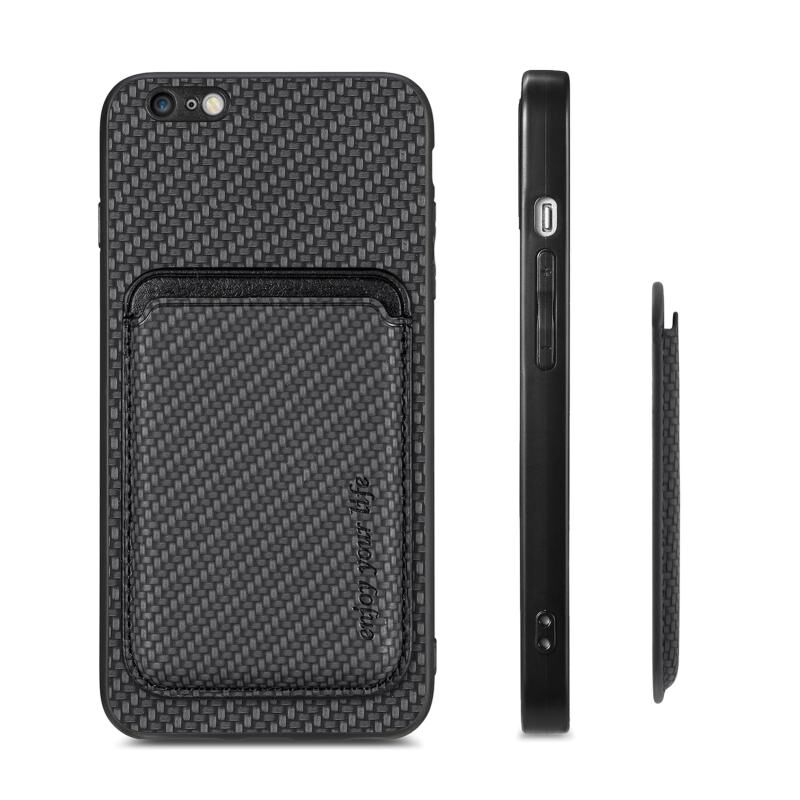 Θήκη τηλεφώνου MagSafe μαγνητική από ανθρακονήματα και δέρμα για iPhone 6 Plus / 6S Plus (Μαύρο)
