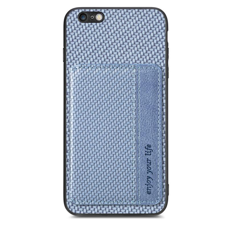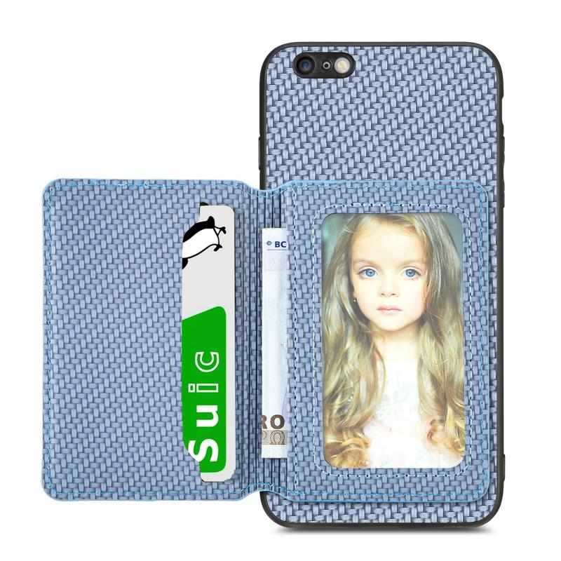 For iPhone 6 Plus / 6s Plus Carbon Fiber Magnetic Card Bag Phone Case(Blue)