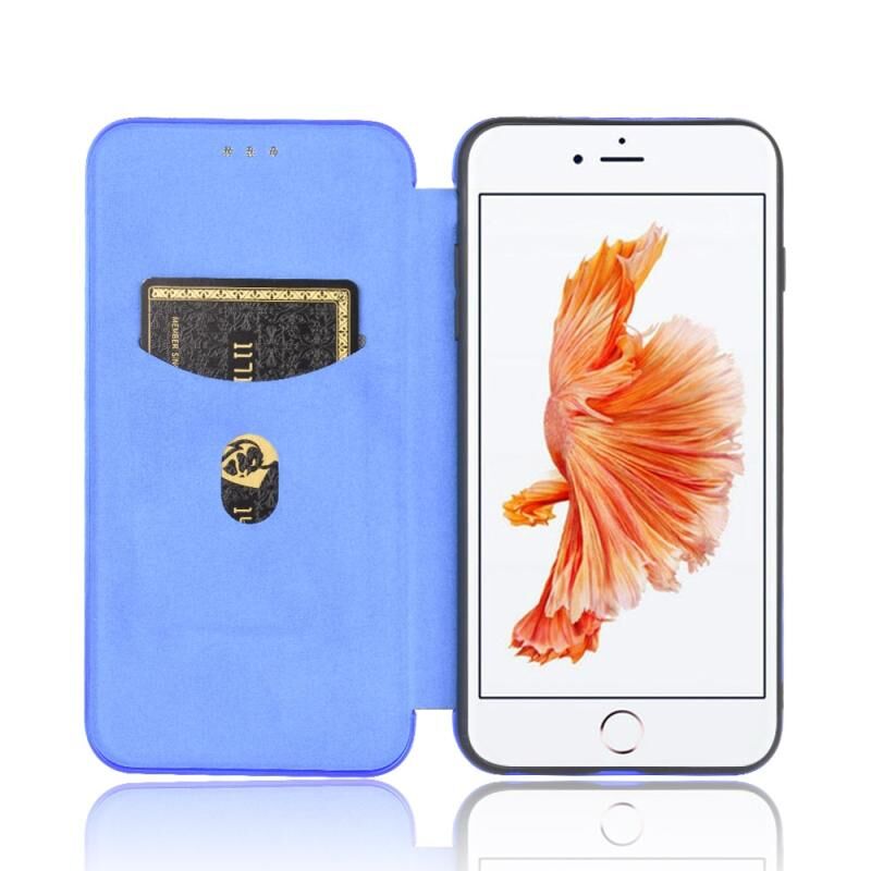 Θήκη για iPhone 6 Plus / 6s Plus με υφή ανθρακονήματος, οριζόντια, αναδιπλούμενη από TPU + PC + Δερματίνη PU με θήκη για κάρτες (Ροζ)