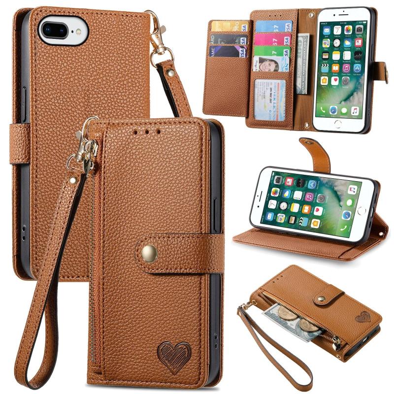 For iPhone 6 Plus / 6s Plus Love Zipper Lanyard Leather Phone Case(Brown)