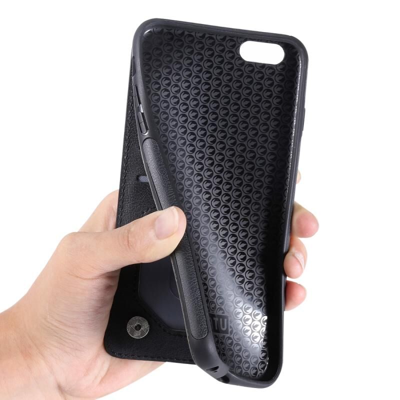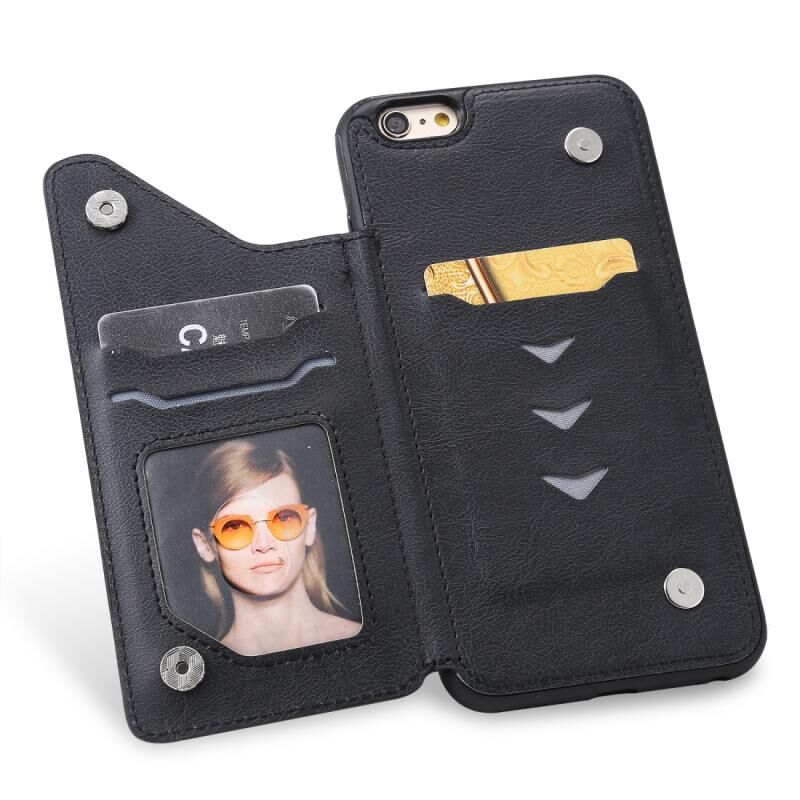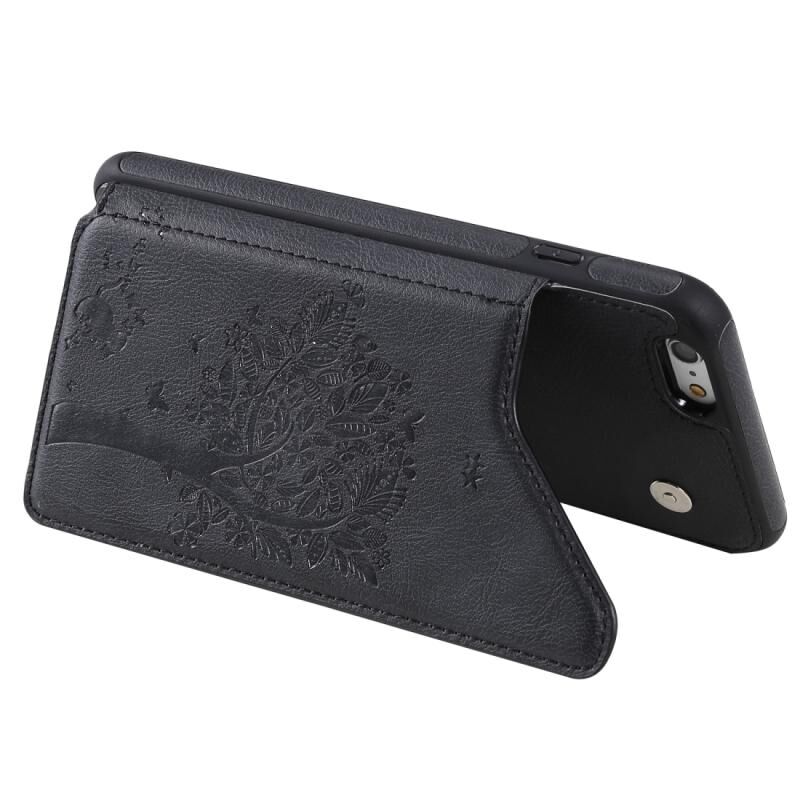 Θήκη για iPhone 6 Plus & 6s Plus με σχέδιο ανάγλυφου γατιού, αντικραδασμική προστατευτική με θήκες για κάρτες & κορνίζα φωτογραφιών & βάση στήριξης (Μαύρο)