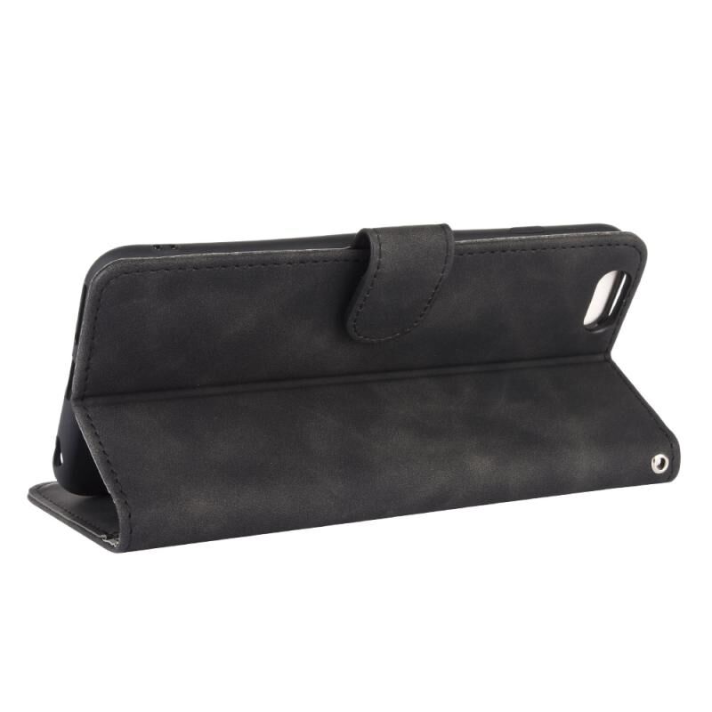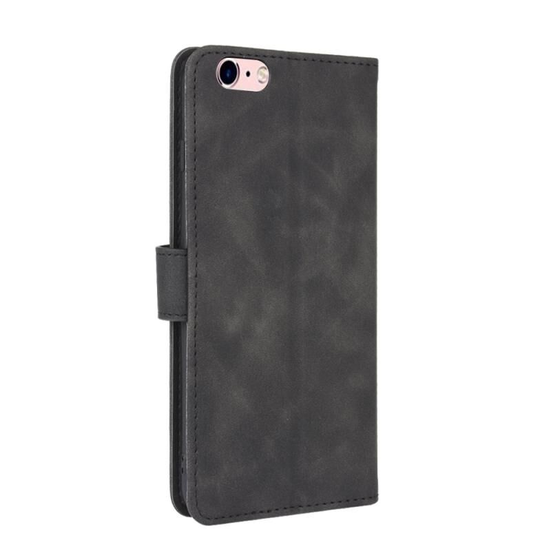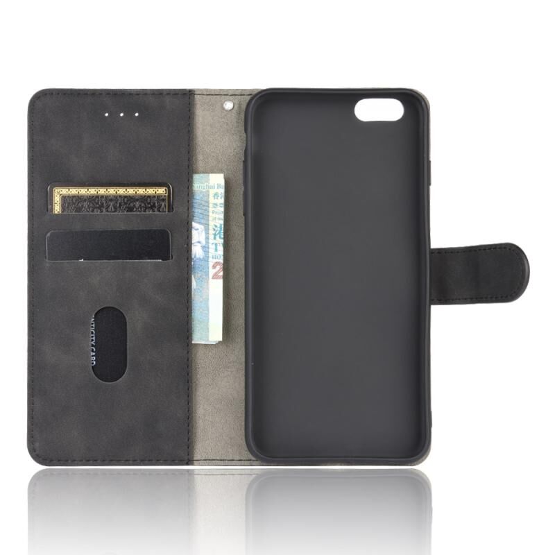 Θήκη για iPhone 6 Plus & 6s Plus, μονόχρωμη, με αίσθηση δέρματος, μαγνητικό κούμπωμα, οριζόντια, με υφή μοσχαριού, από δερματίνη PU, με βάση & θήκες για κάρτες & πορτοφόλι (Μαύρο)