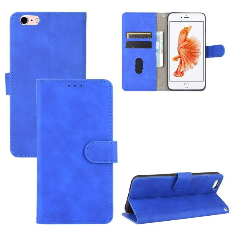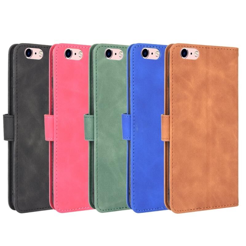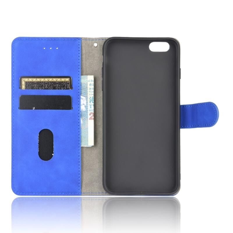 Θήκη για iPhone 6 Plus & 6s Plus, μονόχρωμη, με αίσθηση δέρματος, μαγνητικό κούμπωμα, οριζόντια, με υφή μοσχαριού, από δερματίνη PU, με βάση & θήκες για κάρτες & πορτοφόλι (Μαύρο)