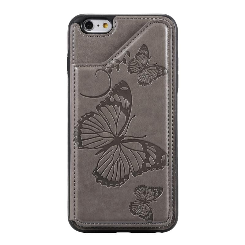 For iPhone 6 Plus Butterfly Embossing Pattern Shockproof Protective Case with Holder & Card Slots & Photo Frame(Gray)