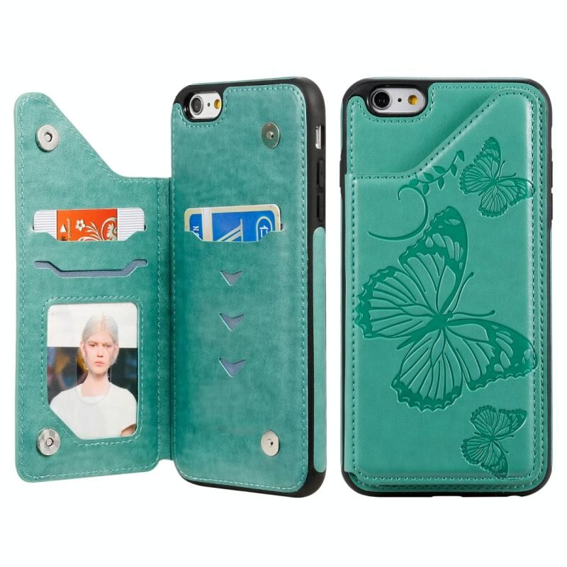 For iPhone 6 Plus Butterfly Embossing Pattern Shockproof Protective Case with Holder & Card Slots & Photo Frame(Green)