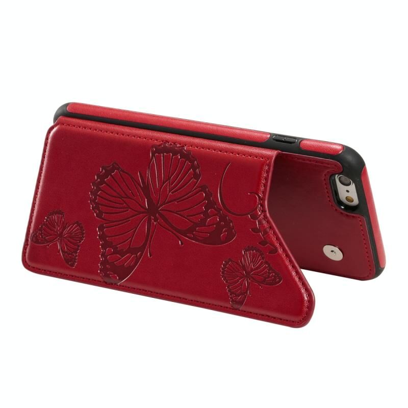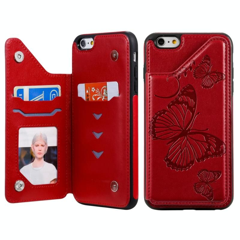 For iPhone 6 Plus Butterfly Embossing Pattern Shockproof Protective Case with Holder & Card Slots & Photo Frame(Red)