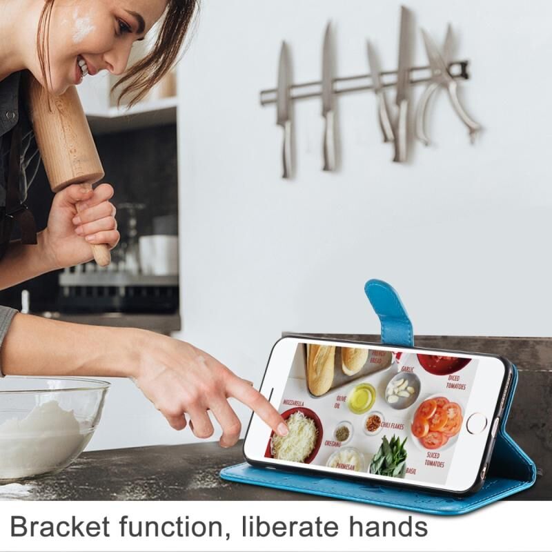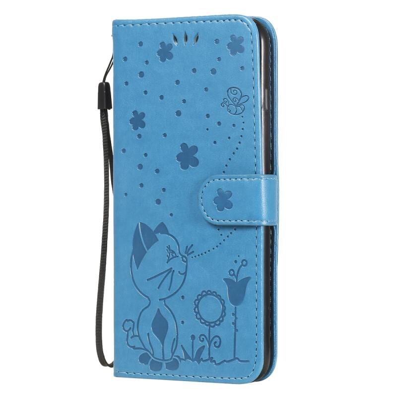 For iPhone 6 Plus Cat Bee Embossing Pattern Shockproof Horizontal Flip Leather Case with Holder & Card Slots & Wallet(Blue)