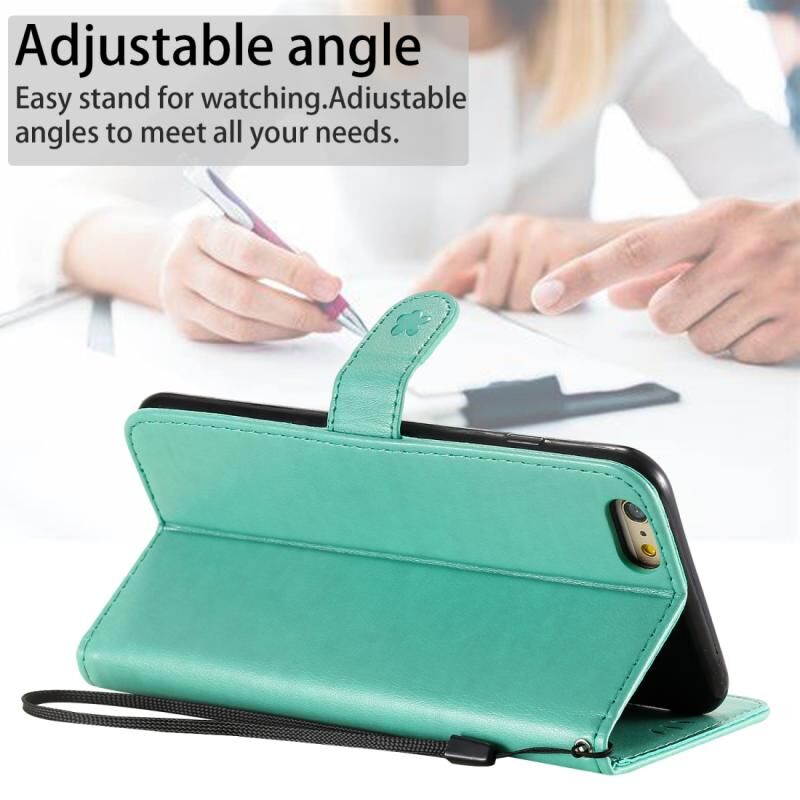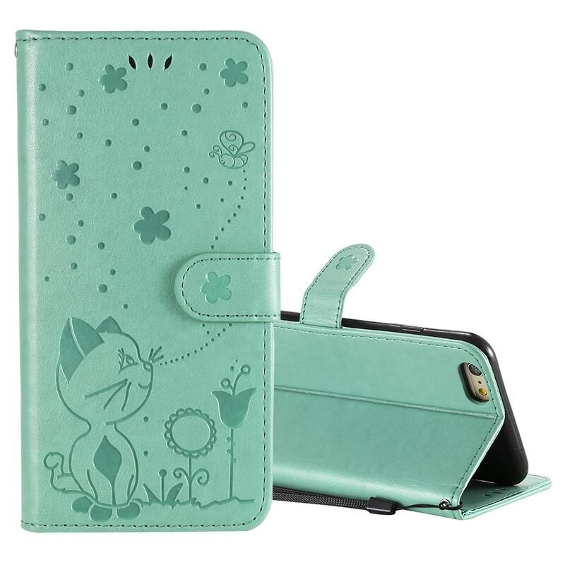 For iPhone 6 Plus Cat Bee Embossing Pattern Shockproof Horizontal Flip Leather Case with Holder & Card Slots & Wallet(Green)