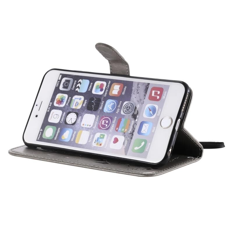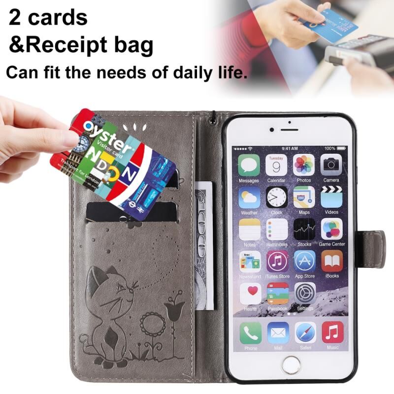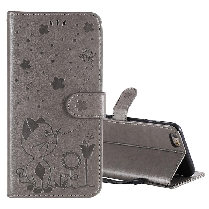 For iPhone 6 Plus Cat Bee Embossing Pattern Shockproof Horizontal Flip Leather Case with Holder & Card Slots & Wallet(Grey)