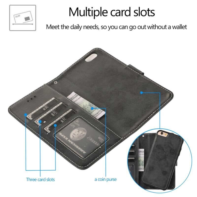 4. Πολυλειτουργικός σχεδιασμός, θήκες για κάρτες, πορτοφόλι, βάση στήριξης, αποσπώμενη μαγνητική προστατευτική πίσω θήκη.