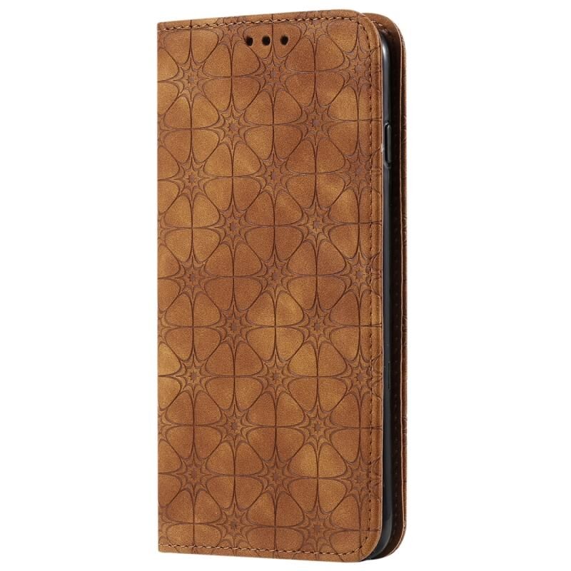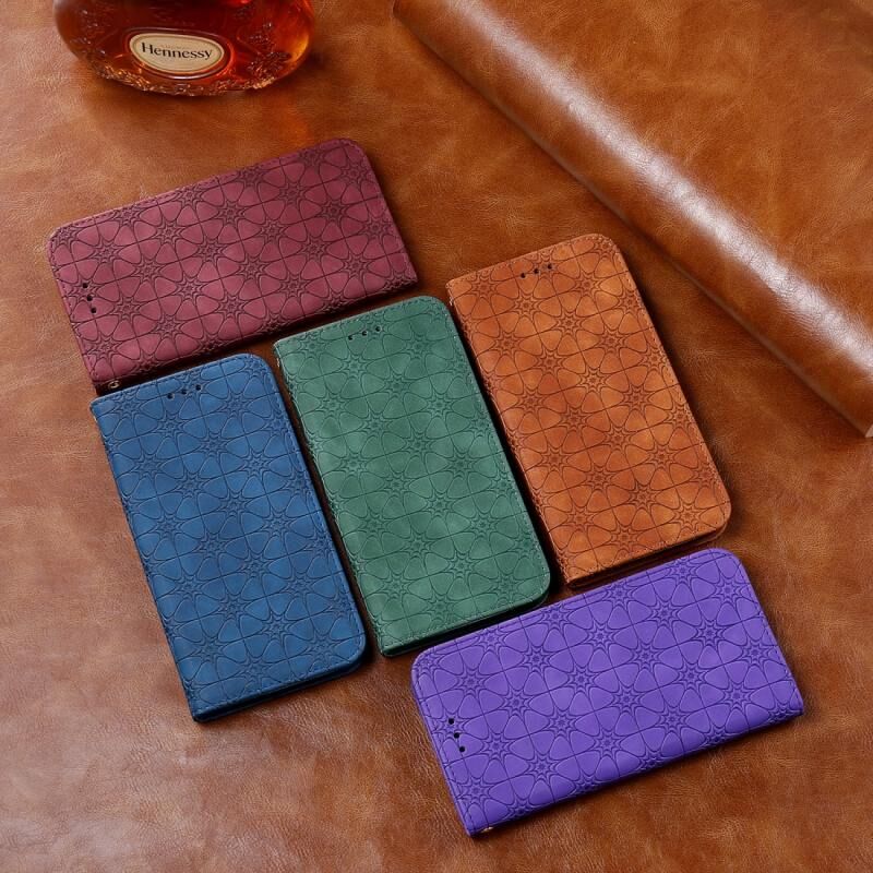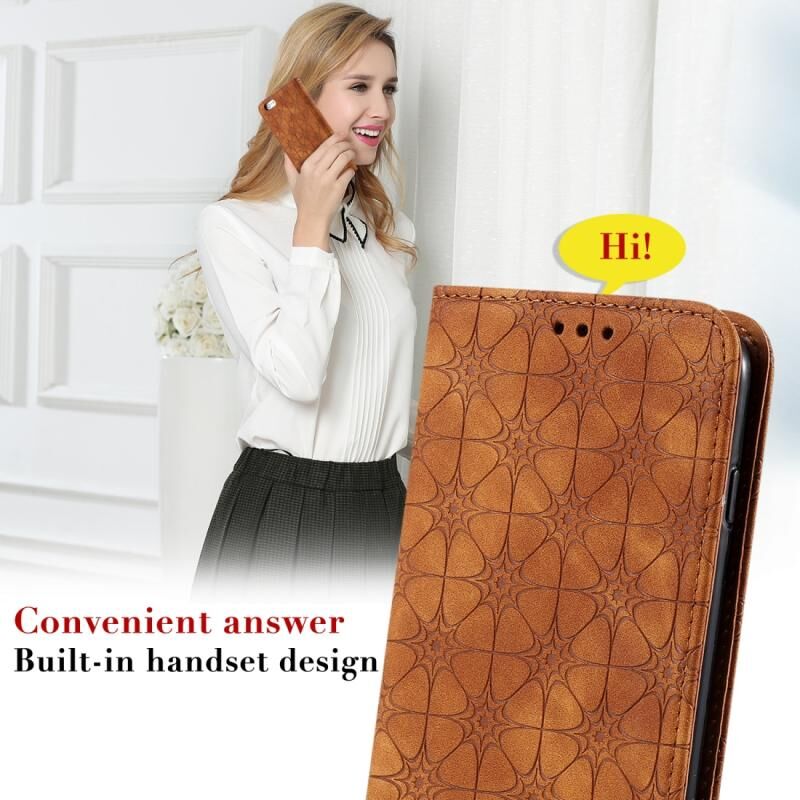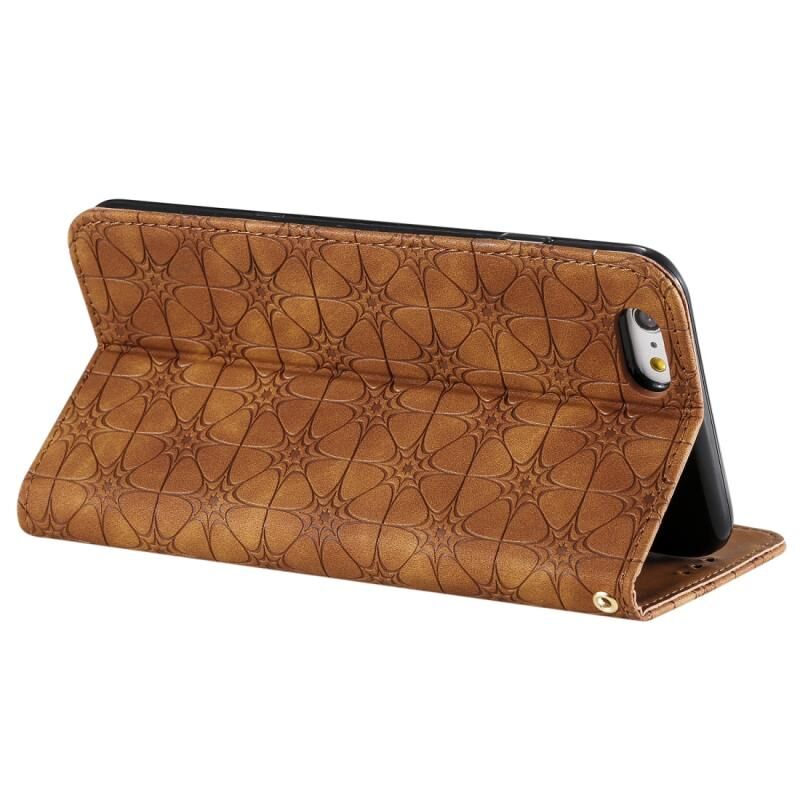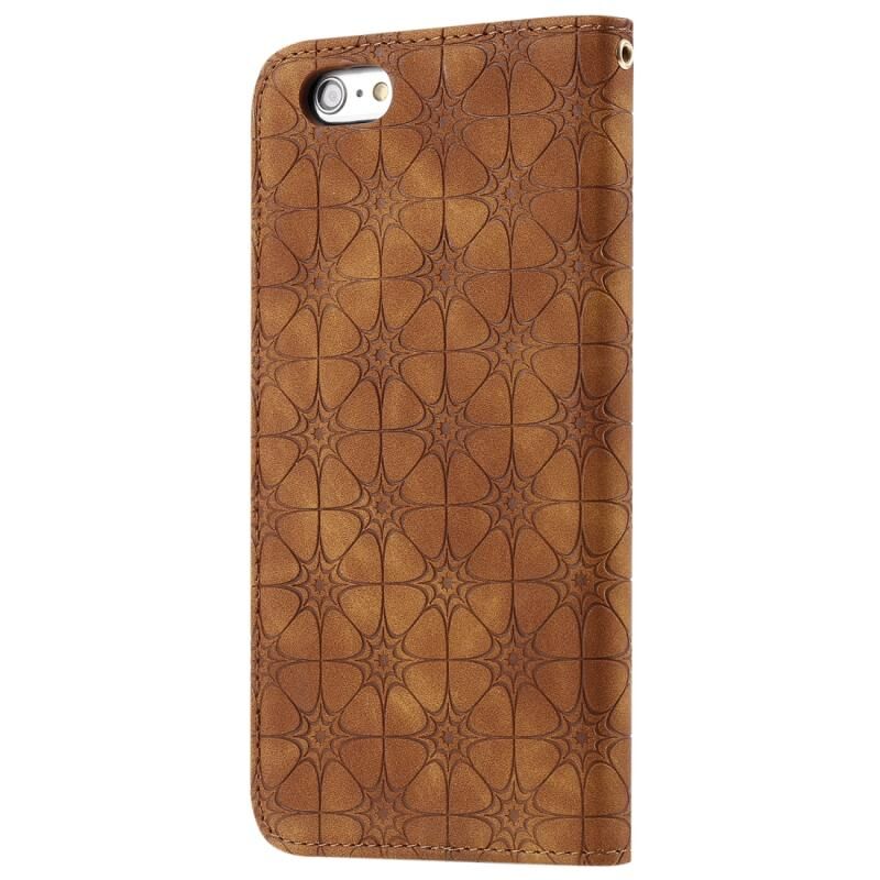 Θήκη δέρματος οριζόντιας αναδίπλωσης με μαγνητικό κλείσιμο και ανάγλυφο σχέδιο τυχερών λουλουδιών για iPhone 6 Plus, με βάση και θήκες για κάρτες (Σκούρο Μπλε)