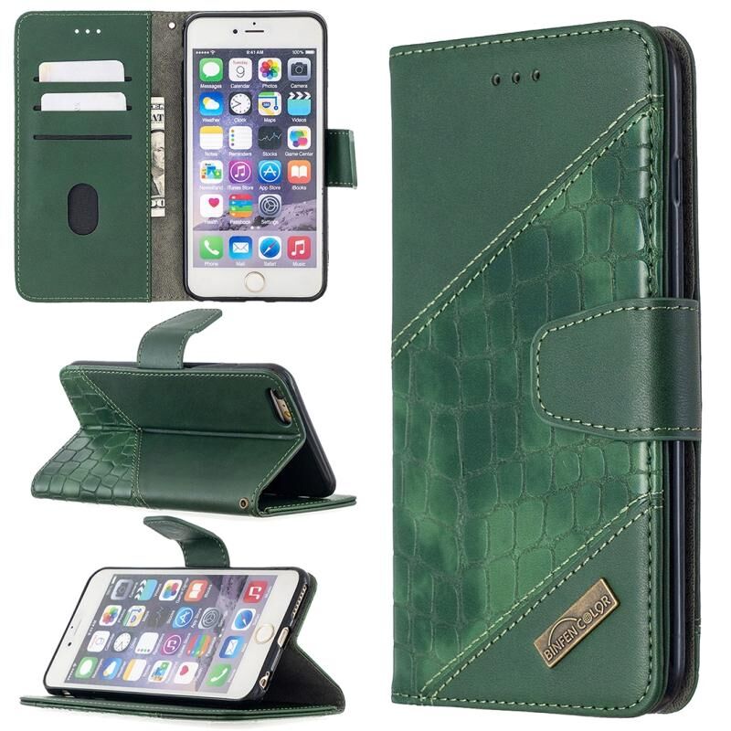 Θήκη για iPhone 6 Plus, οριζόντια, από δερματίνη PU με υφή κροκόδειλου, σε ταιριαστό χρώμα, με πορτοφόλι, βάση και θήκες για κάρτες (πράσινο)